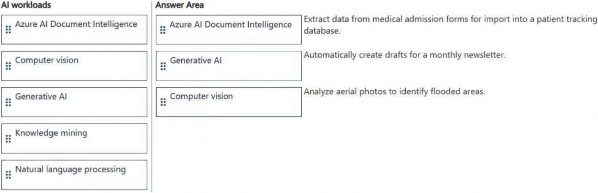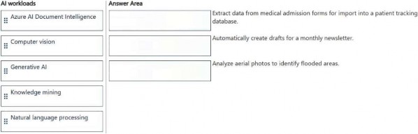 To answer, drag the appropriate AI workload from the column on the left to its task on the right. Each workload may be used once, more than once, or not at all.