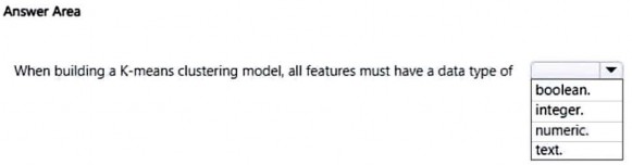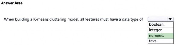 When building a K-means clustering model, all features must have a data type of    . K-means is one of the simplest and the best known unsupervised learning algorithms.