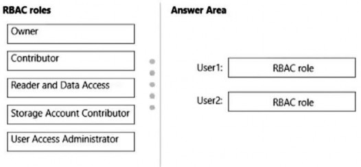 Which RBAC role should you assign to each user? To answer, drag the appropriate roles to the correct users. Each role may be used once, more than once, or not at all. You may need to drag the split bar between panes or scroll to view content.