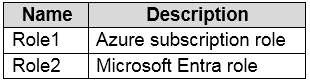 You have an Azure subscription that is linked to a Microsoft Entra tenant. The tenant contains the custom role- based access control (RBAC) roles shown in the following table.