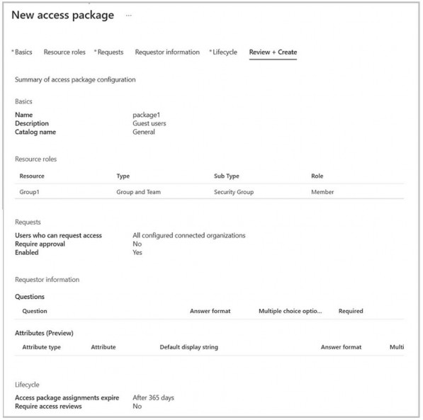 You create an access package as shown in the Access package exhibit. (Click the Access package tab.)