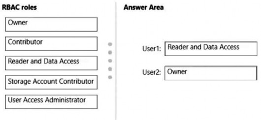 • User2 must assign users the Contributor role for storage accounts.