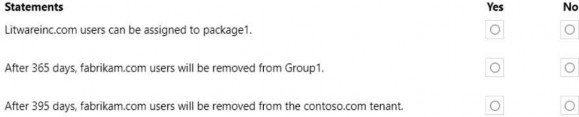 You have two external partner organizations named fabrikam.com and litwareinc.com. Fabrikam.com is configured as a connected organization.