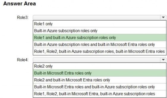 Box 1: Role1 and built-in Azure subscription roles only. Role3 will be an Azure subscription role.