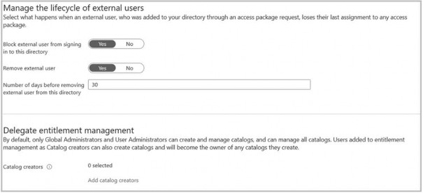 You configure the external user lifecycle settings as shown in the Lifecycle exhibit. (Click the Lifecycle tab.)
