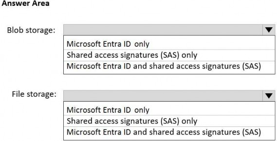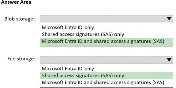 Box 1: Microsoft Entra ID and Shared Access Signature (SAS)