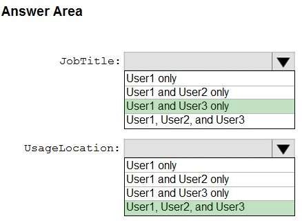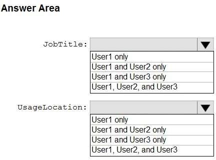 You need to modify the JobTitle and UsageLocation attributes for the users.