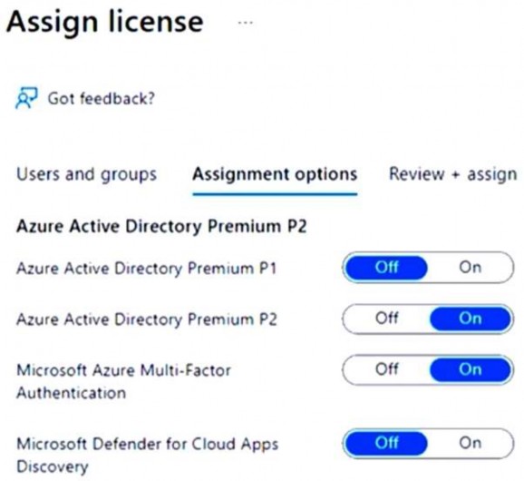 You assign a Microsoft Entra ID P2 license to Group1 as shown in the following exhibit.