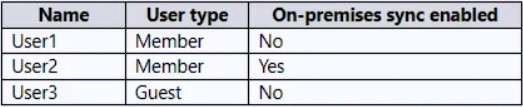 You have a Microsoft Entra hybrid deployment that contains the users shown in the following table.