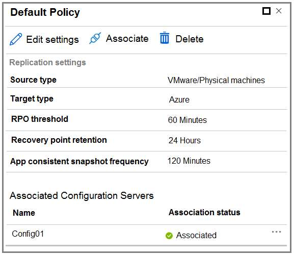 You configure the Azure Site Recovery replication policy shown in the following exhibit.