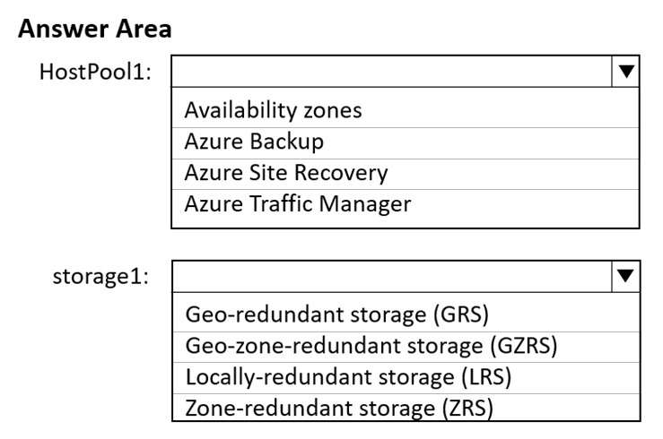 · Users must be able to connect to HostPool1 if a datacenter in the East US region fails.
