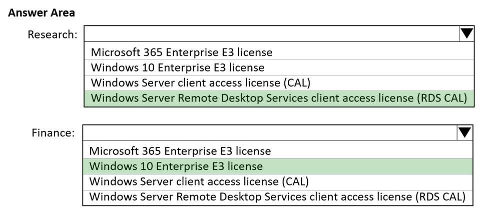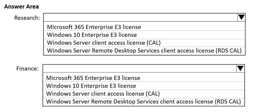 Which license should you recommend for each department? To answer, select the appropriate options in the answer area.