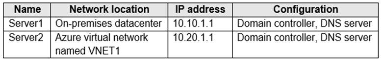 Your network contains an on-premises Active Directory domain that syncs to a Microsoft Entra tenant. The domain contains the domain controllers shown in the following table.