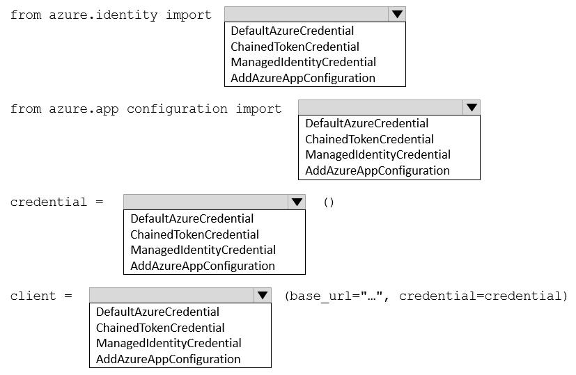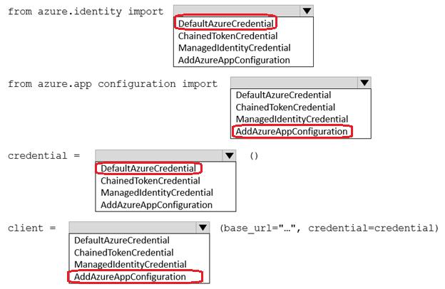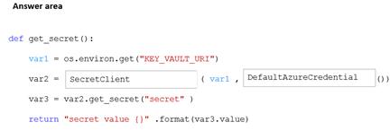 How should you complete the code? To answer, select the appropriate options in the answer area.