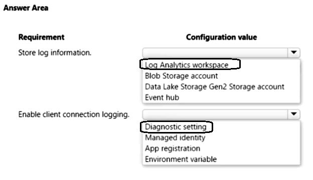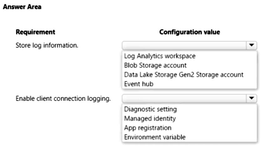 Which configuration values should you use? To answer, select the appropriate options in the answer area.