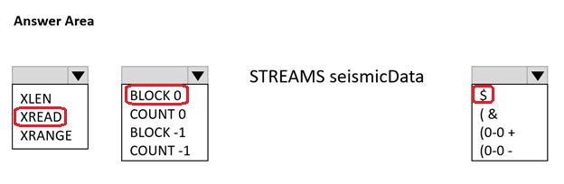 You need to implement the Azure Cache for Redis command to receive seismic data.