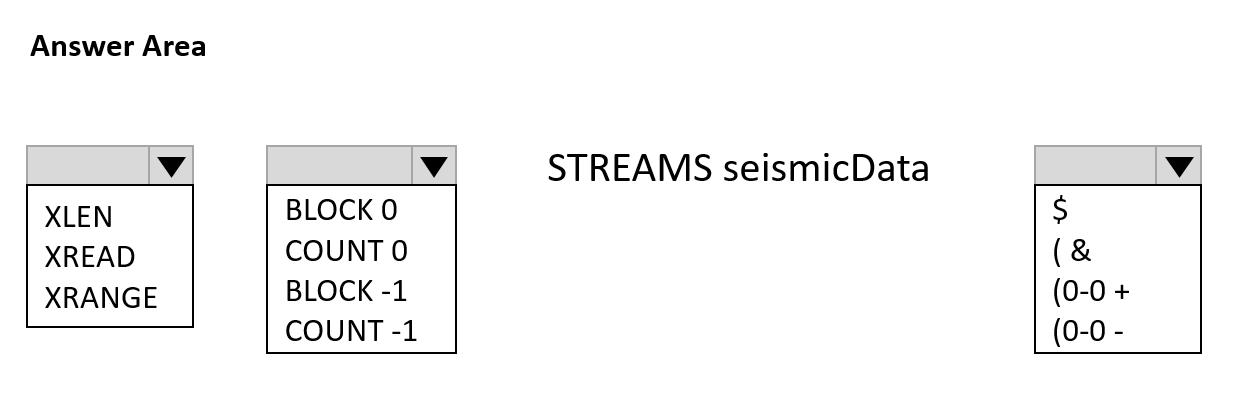 You develop new functionality in a web application for a company that provides access to seismic data from around the world. The seismic data is stored in Redis Streams within an Azure Cache for Redis instance.