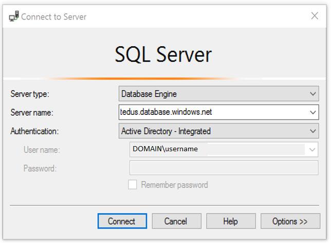 The following procedures show you how to connect to a SQL database with an Azure AD identity using SQL Server Management Studio or SQL Server Database