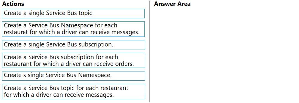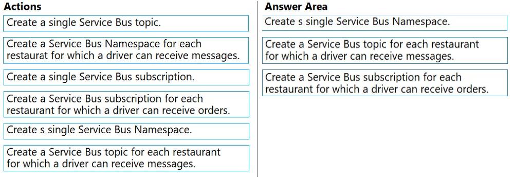 Box 2: Create a Service Bus Topic for each restaurant for which a driver can receive messages.