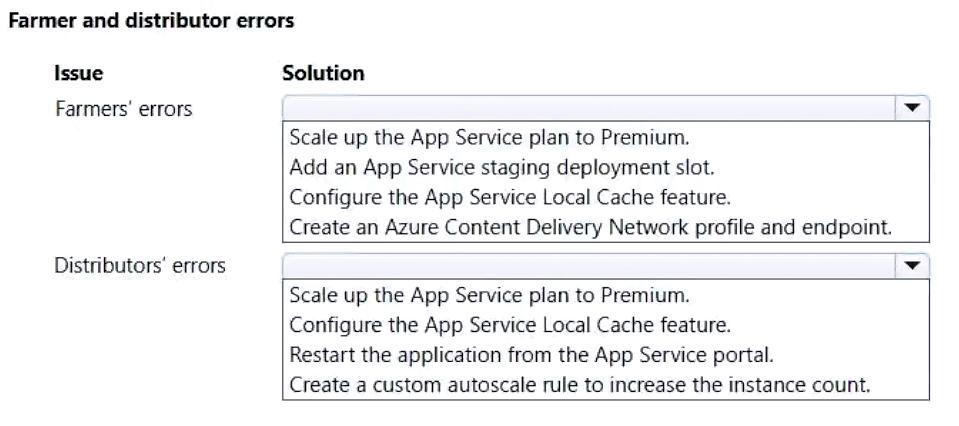 • A queue-based load leveling pattern must be implemented by using Azure Service Bus queues to support high volumes of website agricultural production resource requests.