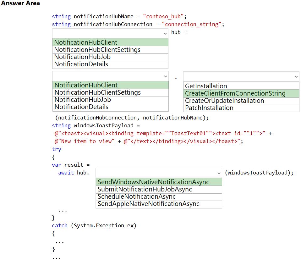 NotificationHubClient hub = NotificationHubClient.CreateClientFromConnectionString(listenConnString, hubName);