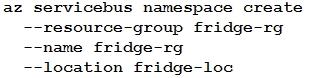 Step 2: # Create a Service Bus messaging namespace with a unique name namespaceName=myNameSpace$RANDOM az servicebus namespace create --resource-group $resourceGroupName --name $namespaceName --location eastus