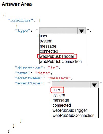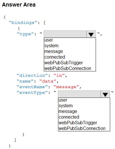 You are developing a service where customers can report news events from a browser using Azure Web PubSub. The service is implemented as an Azure Function App that uses the JSON WebSocket subprotocol to receive news events.