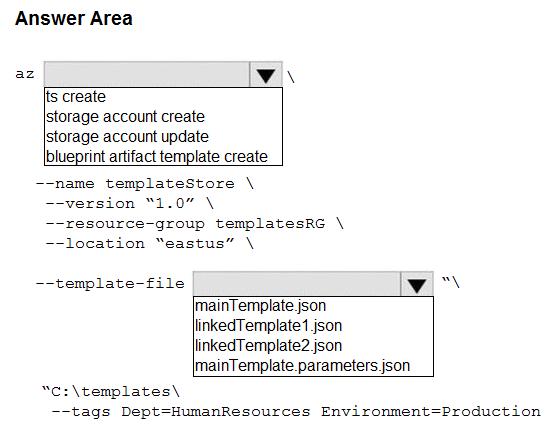 You are authoring a set of nested Azure Resource Manager templates to deploy Azure resources. You author an Azure Resource Manager template named mainTemplate.json that contains the following linked templates: linkedTemplate1.json, linkedTemplate2.json.
