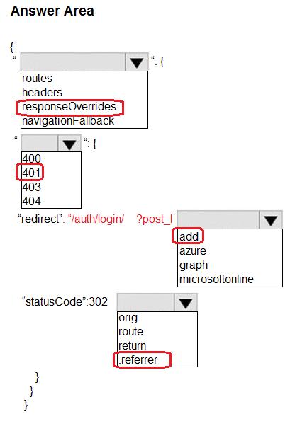 How should you complete the configuration file? To answer, select the appropriate options in the answer area.