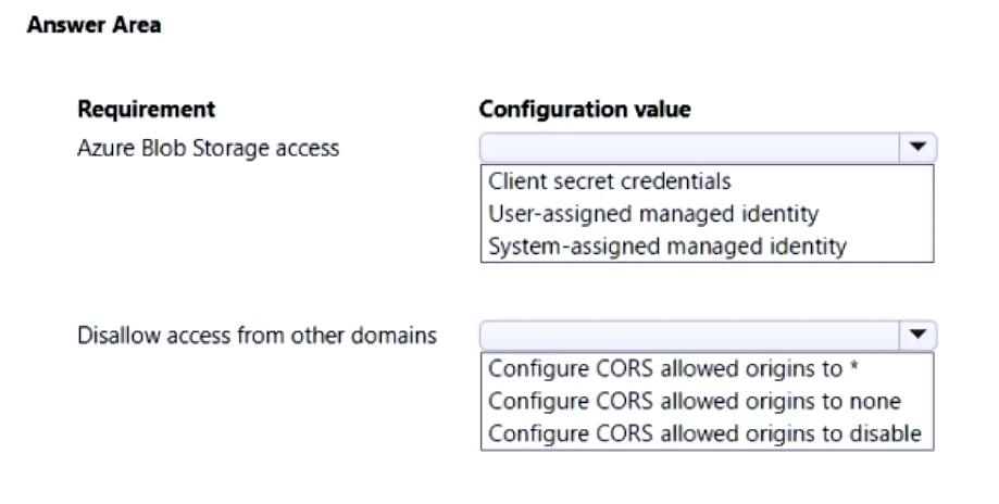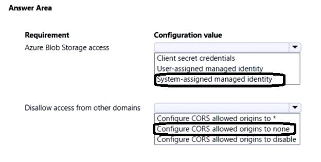 • Access to the Azure Blob Storage account must not require the provisioning or rotation of secrets.