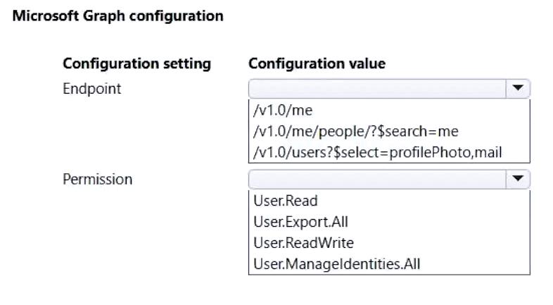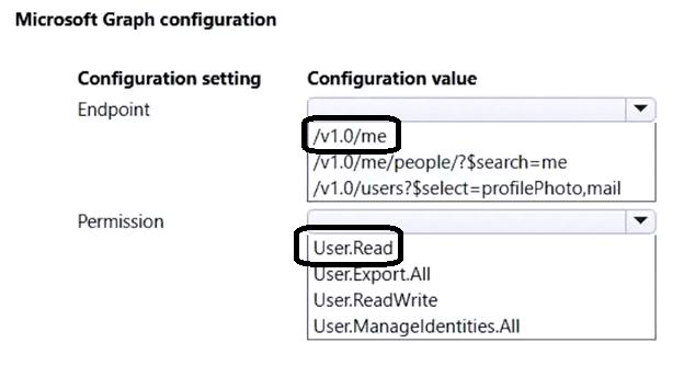 Which Microsoft Graph configuration should you use? To answer, select the appropriate options in the answer area.