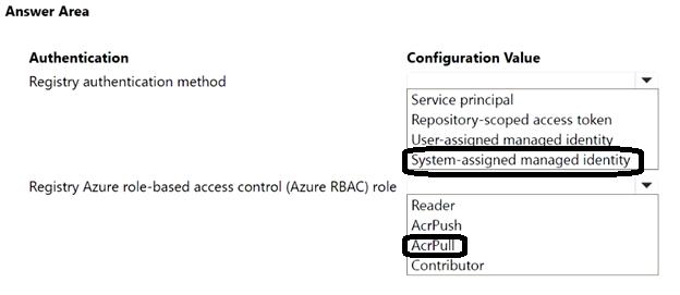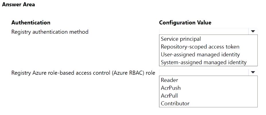Images must be pulled from the registry. You must be able to view all registries within the current Azure subscription. Authentication must be managed by Microsoft Entra ID and removed when the registry is deleted. The solution must use the principle of least privilege.