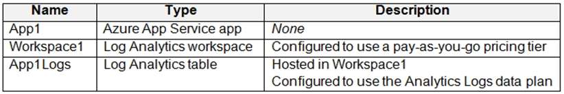You need to minimize the Log Analytics costs associated with App1. The solution must meet the following requirements: