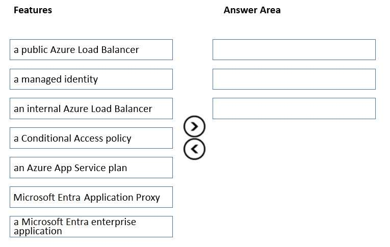 Which three features should you recommend be deployed and configured in sequence? To answer, move the appropriate features from the list of features to the answer area and arrange them in the correct order.