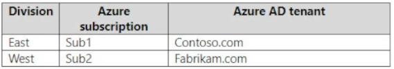 Sub1 contains an Azure App Service web app named App1. App1 uses Azure AD for single-tenant user authentication. Users from contoso.com can authenticate to App1.