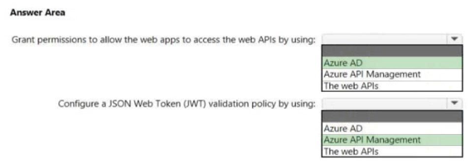 The company is developing 10 web apps that will use the web APIs. The web apps and the APIs are registered in the company s Azure Active Directory (Azure