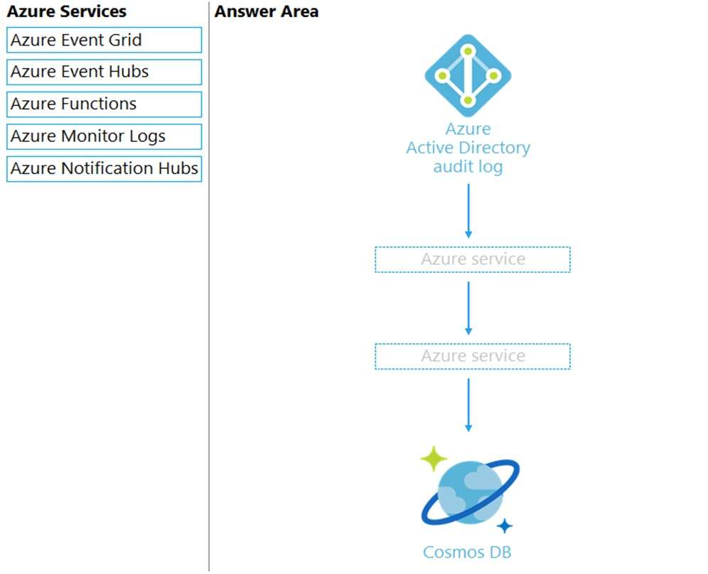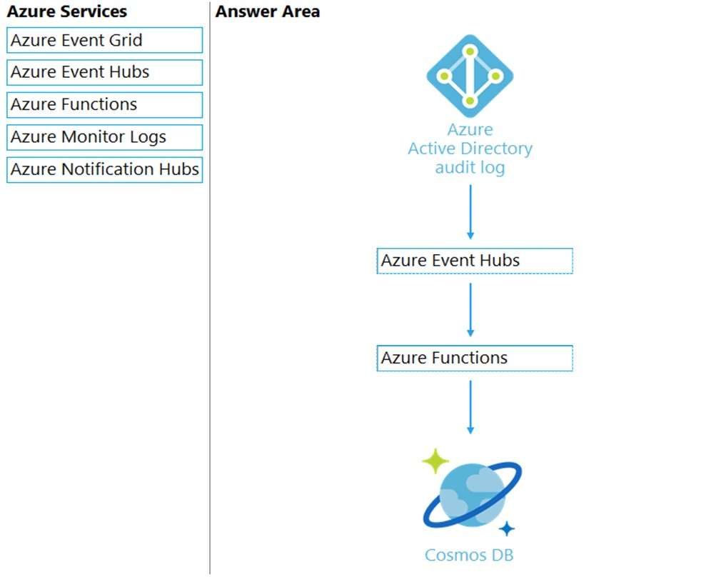 You need to design an architecture to capture the creation of users and the assignment of roles. The captured data must be stored in Azure Cosmos DB.
