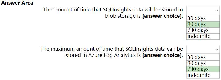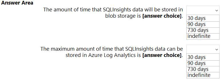 You plan to configure the Diagnostics settings on the databases as shown in the following exhibit.