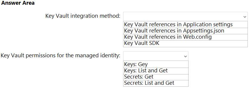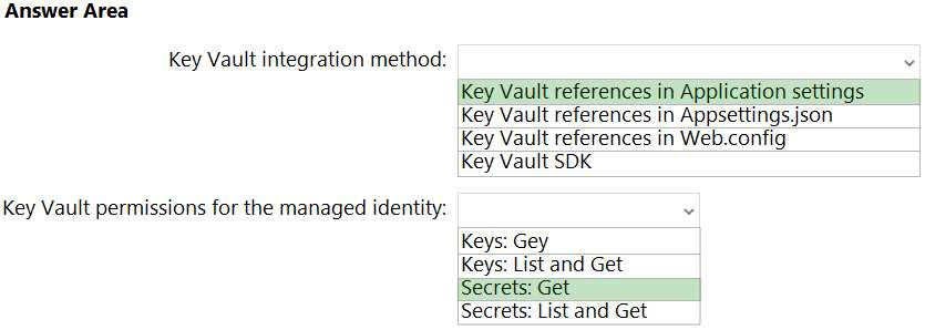 Box 1: Key Vault references in Application settings