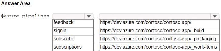 You have a project in Azure DevOps named Contoso App that contains pipelines in Azure Pipelines for GitHub repositories. You need to ensure that developers receive Microsoft Teams notifications when there are failures in a pipeline of Contoso App. What should you run in Teams? To answer, select the appropriate options in the answer area.