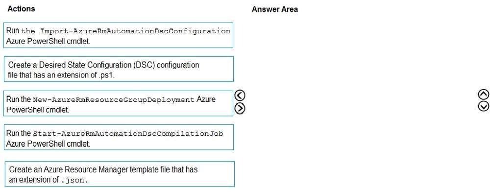 https://docs.microsoft.com/en-us/powershell/module/azurerm.automation/import- azurermautomationdscconfiguration https://docs.microsoft.com/en-us/powershell/module/azurerm.automation/start- azurermautomationdsccompilationjob