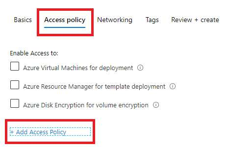 Step 2: Configure an access policy in the key vault.