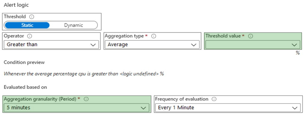 -Be triggered when average CPU usage exceeds 80 percent for 15 minutes.