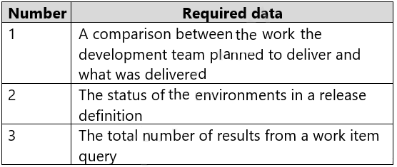 -The Azure DevOps dashboard must display the metrics shown in the following table.