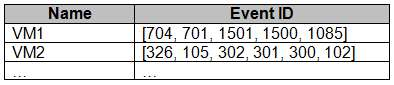 You need to identify the distinct event IDs of each virtual machine as shown in the following table.