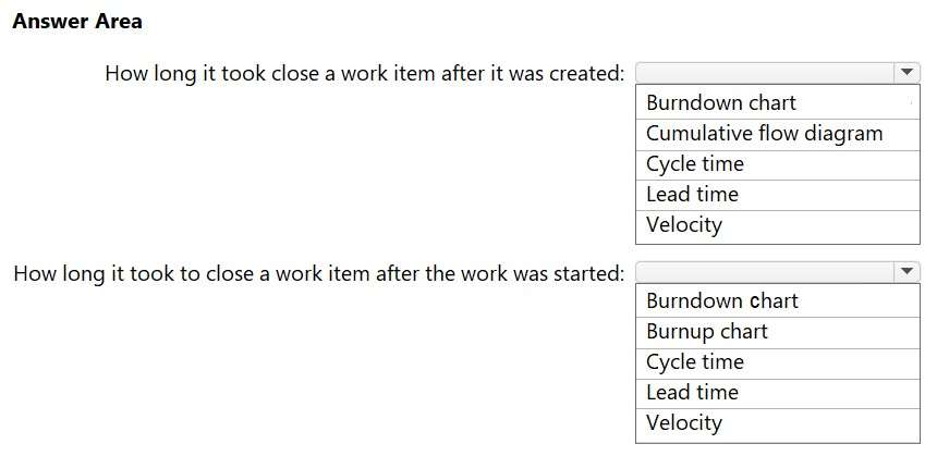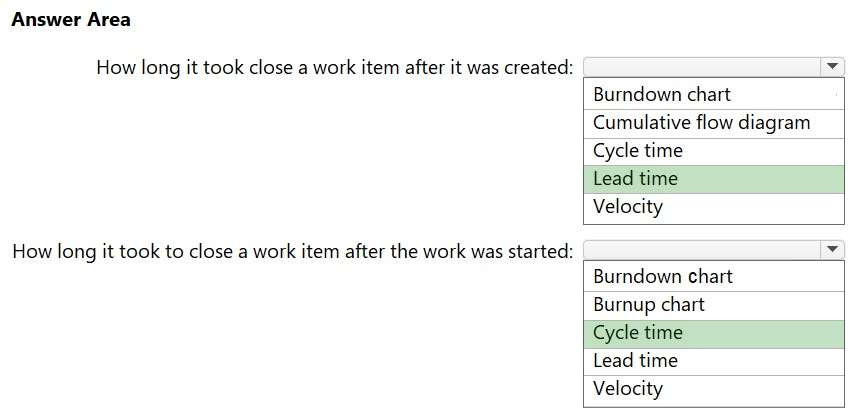 Lead time measures the total time elapsed from the creation of work items to their completion.