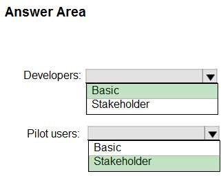 You need to identify which access levels are required to ensure that developers can request and gather feedback from the pilot users. The solution must use the principle of least privilege.