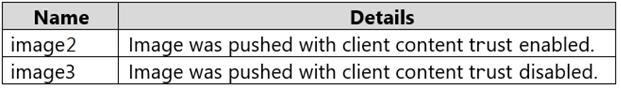 After content trust is enabled, you push two images to ContReg1 as shown in the following table.