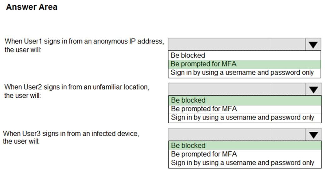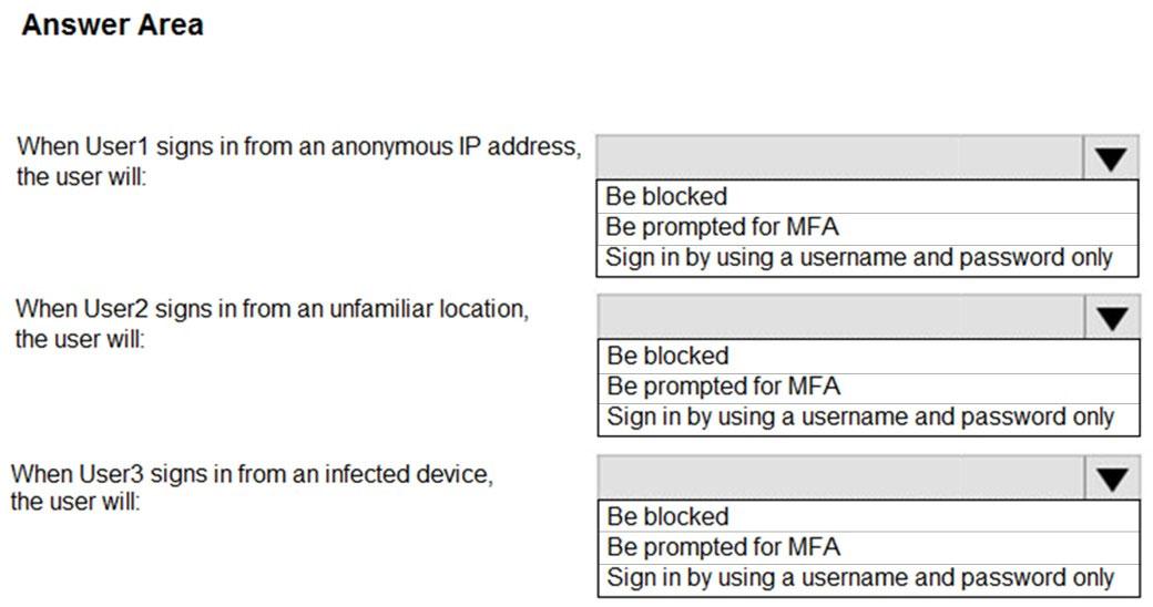 http://www.rebeladmin.com/2018/09/step-step-guide-configure-risk-based-azure-conditional-access-policies/ https://docs.microsoft.com/en-us/azure/active-directory/identity-protection/concept-identity-protection-policies https://docs.microsoft.com/en-us/azure/active-directory/identity-protection/concept-identity-protection-risks