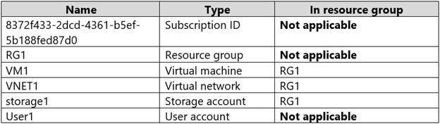 You have an Azure subscription named Subscription1 that contains the resources shown in the following table.